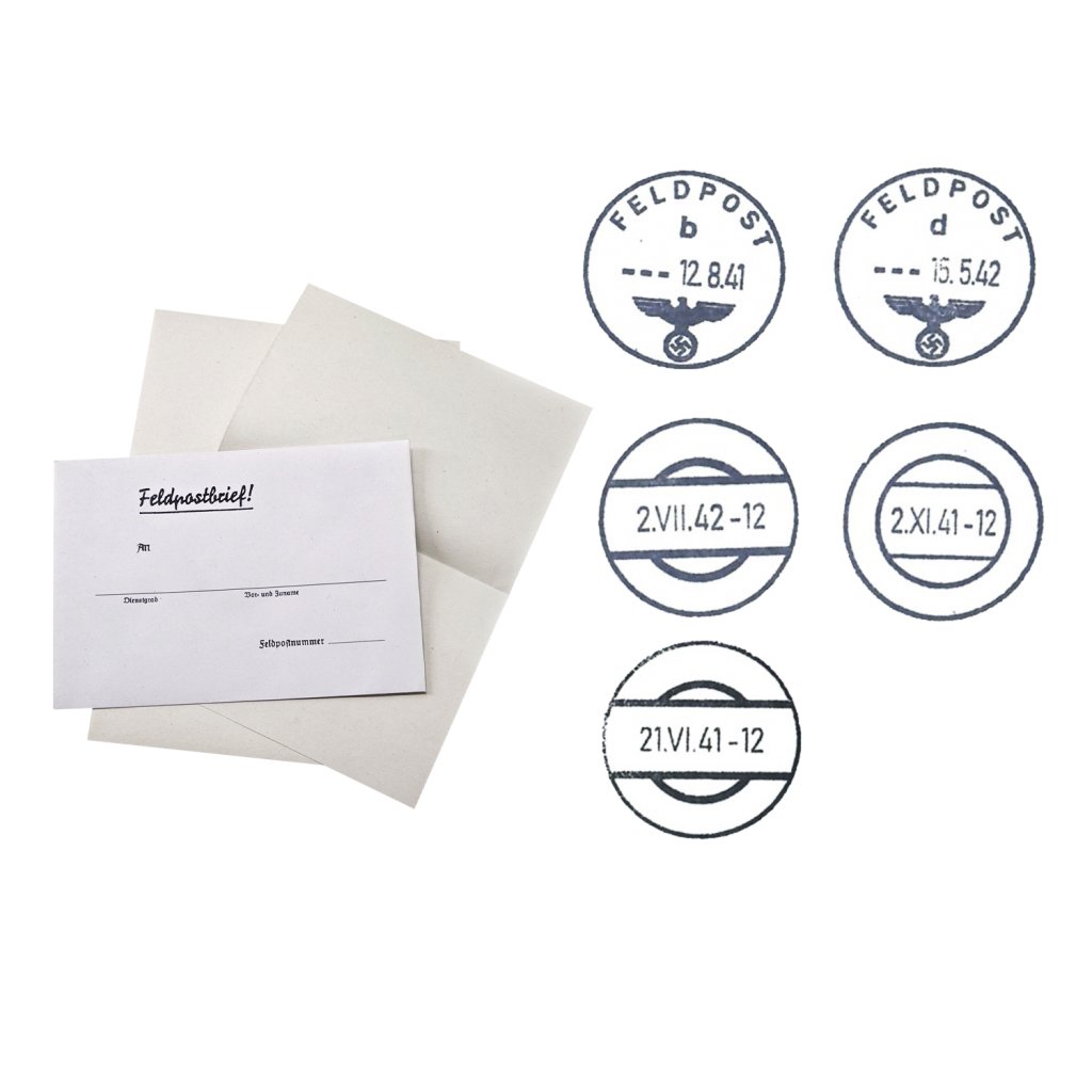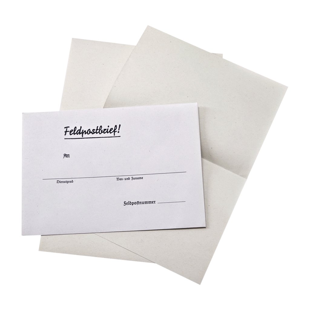 Reproduction of German Feldpost letter sheets and envelopes, which represented the only connection between soldiers at the front and their homes and loved ones. These letters were an essential part of the daily life of Wehrmacht soldiers, with their design adapted to wartime logistical demands for maximum material saving and efficiency in field conditions. The paper texture and overall design meet historical standards, making them an essential accessory for anyone involved in reenactment, film production, or the creation of historical exhibitions.