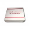 A reproduction of a cardboard box labeled "Für Frontkämpfer im Großkampf" ("For frontline fighters in major battles") and "Nur für Frontkämpfer im Infanterieverband" ("Only for frontline fighters in infantry units"). These inscriptions were used on packages containing sweets, tobacco, or other bonus rations intended for soldiers deployed directly on the front line.
