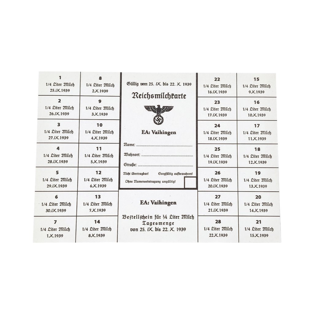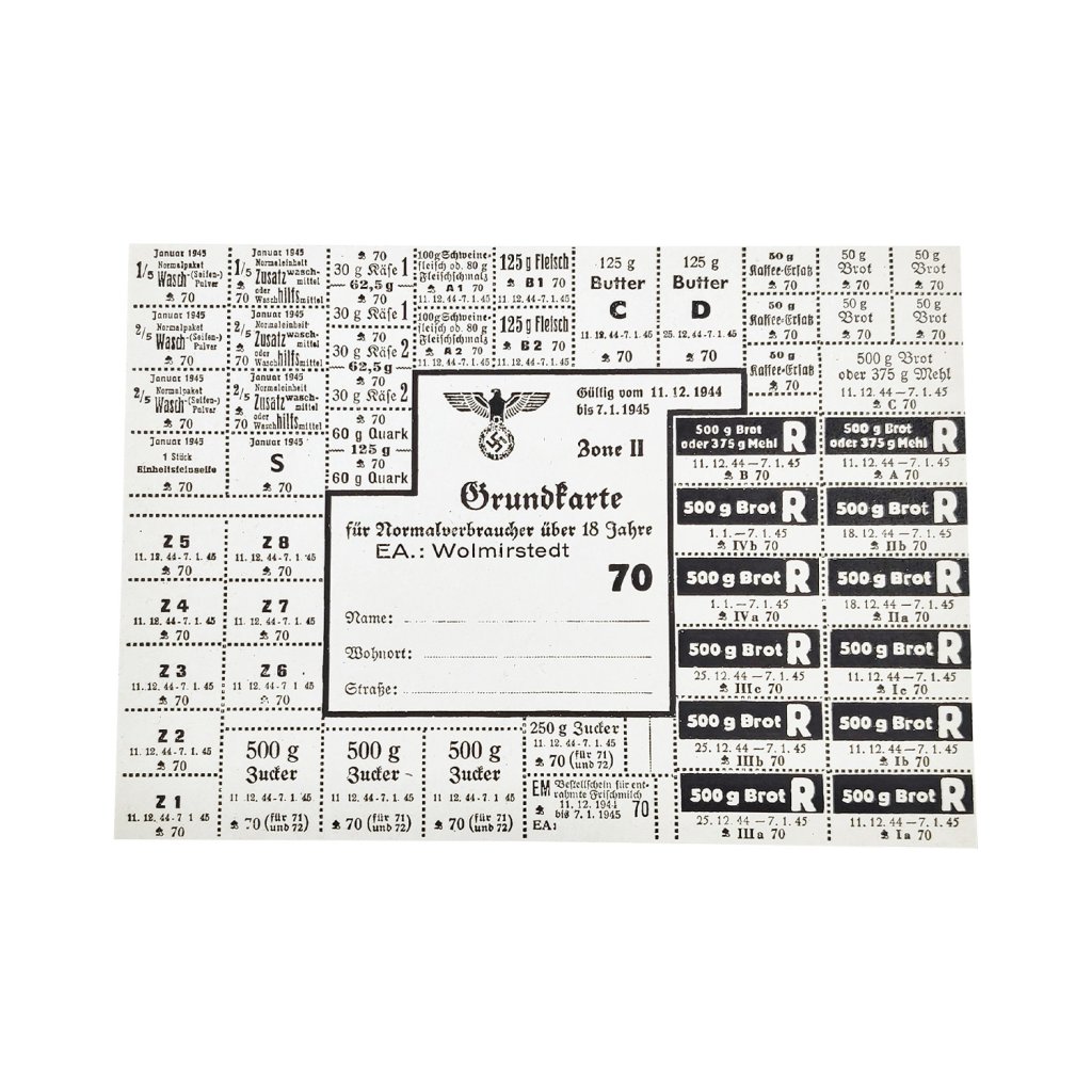 Looking back on the experience of the First World War, the Nazi leadership feared an insufficient supply of the population and the associated famine. Four days before the start of World War II, a regulation was adopted on the provisional provision of the vital needs of the German people, and allotments and ration coupons were introduced.