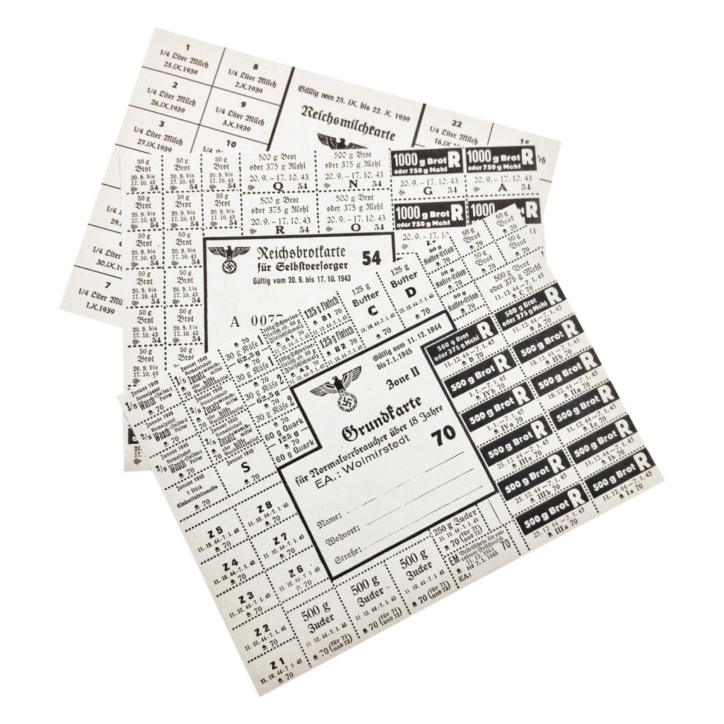 At the end of 1939, cards for hard workers and one for long and night workers were added. In addition, various cards were dealt to toddlers, children under the age of six, youth and adults. Soldiers on vacation (who stayed with their families) also received suitable holiday cards. The rural population, which was at least partially self-sufficient, received lower benefits.