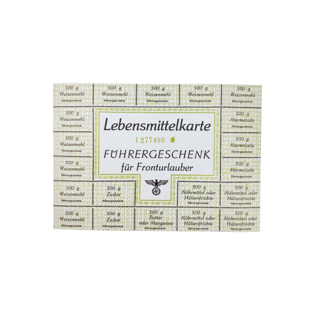 Führergeschenk für Fronturlauber was a privilege for Wehrmacht soldiers returning home on leave from the front. This "Leader's Gift" served as a bonus package with coupons for wheat flour, sugar, or butter, allowing the soldier to provide his family with ingredients that were otherwise almost unavailable in the civilian sector.